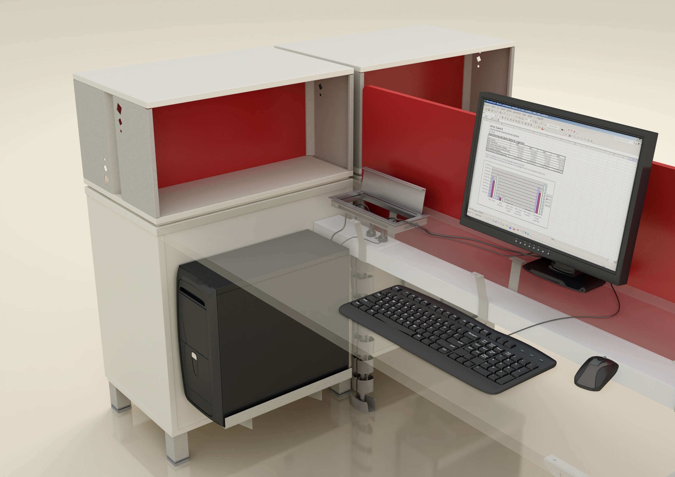 La gran variedad de muebles y accesorios, dan una impronta personal a las áreas de trabajo, como así también excelentes soluciones funcionales y estéticas, pudiéndose generar complejas configuraciones o puestos de trabajo individuales.