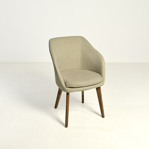 Silla con apoyabrazos, patas de madera maciza, asiento y respaldo tapizado. Las terminaciones son a elección.